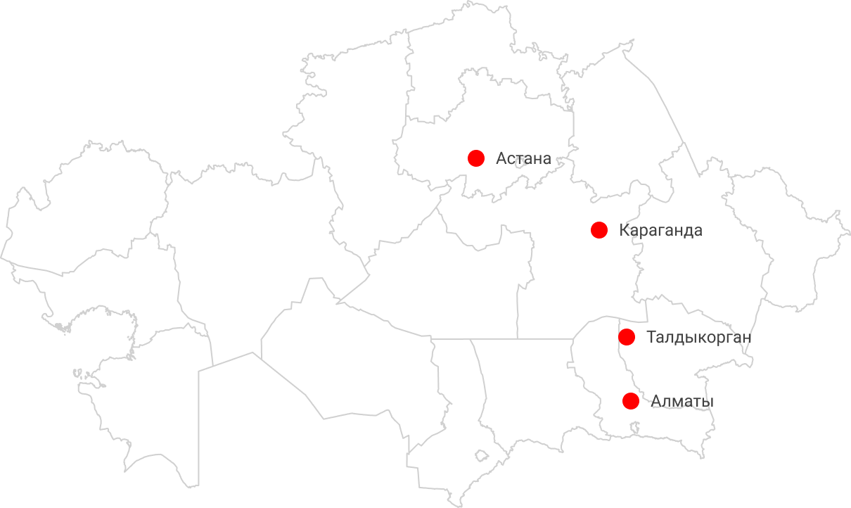 Расположение Федеральной сети МРТ Лидер в Казахстане